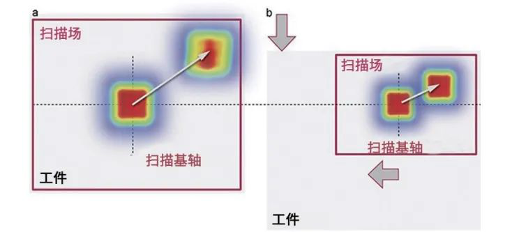 ■圖4(a):使用頂帽光束輪廓進行(xing)激光掃描(miao)期間,由于像差增加而發生翹(qiao)曲現象(xiang);圖4(b):這種失真可以通過(guo)(guo)在處理(li)過(guo)(guo)程(cheng)中利(li)用XY平臺的(de)同(tong)步運動進行(xing)補償(chang),以將掃描(miao)場大小限(xian)制在f-theta透鏡的(de)中心視野范(fan)圍(wei)內
