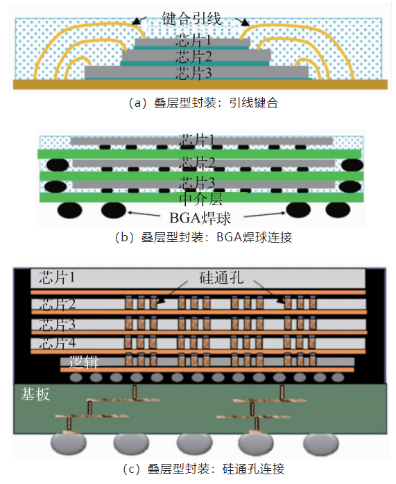 三(san)維集成封(feng)(feng)裝(zhuang)(zhuang)結構(gou)形(xing)式如圖(tu)6所(suo)示,三(san)維封(feng)(feng)裝(zhuang)(zhuang)結構(gou)主要分為疊層(ceng)型三(san)維封(feng)(feng)裝(zhuang)(zhuang)和埋置(zhi)型三(san)維封(feng)(feng)裝(zhuang)(zhuang),是在(zai)二維封(feng)(feng)裝(zhuang)(zhuang)的基(ji)礎(chu)上,采(cai)用引(yin)線鍵(jian)合、倒裝(zhuang)(zhuang)芯片、微凸點、球珊陣列(Ball Grid Array,BGA)、硅通孔(Through Silicon Via,TSV)、PCB埋置(zhi)等工藝技術,在(zai)垂(chui)直(zhi)方向上實現多芯片的疊層(ceng)互連。