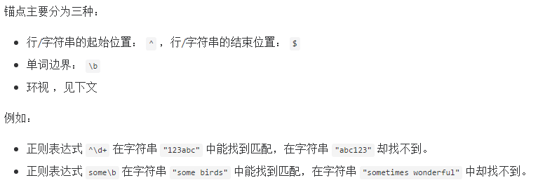 錨點是一類特(te)殊的(de)標(biao)(biao)記,它們不(bu)會匹配任何文(wen)本內(nei)容,而是尋找(zhao)特(te)定的(de)標(biao)(biao)記。你可以簡單理解(jie)為它是原(yuan)先表達式的(de)基礎上(shang)增加了(le)新的(de)匹配條件。如(ru)果條件不(bu)滿足,則無法完成匹配。