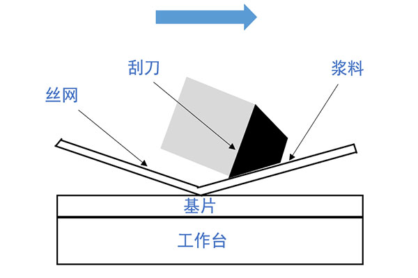 利用絲(si)網(wang)印刷技術(shu),可以將含有金屬的導電(dian)漿料(如:銀(Ag)漿和鋁(AI)漿)透過(guo)絲(si)網(wang)網(wang)孔壓印在硅片(pian)上,從而與硅片(pian)形(xing)成良(liang)好的歐姆(mu)接觸,降低在收集和引出(chu)電(dian)流過(guo)程的損耗,如圖2所示。
