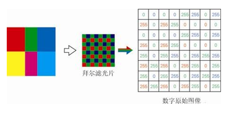 如(ru)果在 CCD 表面覆蓋一個只含(han)紅綠(lv)藍三色的馬賽克濾鏡(jing),再(zai)加上對其輸出信號的處(chu)理(li)算法,就可以實現一個 CCD 輸出彩色圖像數字信號。由于(yu)這個設計理(li)念最初由拜爾(Bayer)先生提出,所以這種濾鏡(jing)也被稱(cheng)作拜爾濾鏡(jing)。