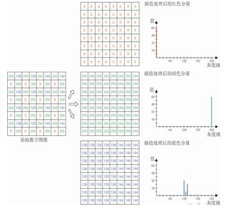 在以測量為目的的應用場合,色彩插值法存在以下重要缺點 :
