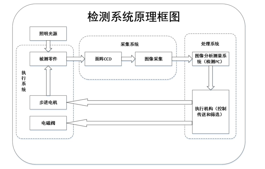 檢測原理如下:在(zai)照明系統、圖(tu)像(xiang)采集系統和運動控制系統的幫助(zhu)下獲取圖(tu)像(xiang),把獲取到(dao)的電子連接器圖(tu)像(xiang)信號傳輸到(dao)PC機,在(zai)PC上(shang)進(jin)(jin)行圖(tu)像(xiang)處理與檢測(ce),完成(cheng)缺陷(xian)檢測(ce)任務,將(jiang)檢測(ce)結果在(zai)顯(xian)示(shi)(shi)器上(shang)進(jin)(jin)行顯(xian)示(shi)(shi),并傳動給執行單元執行相應(ying)的操作。
