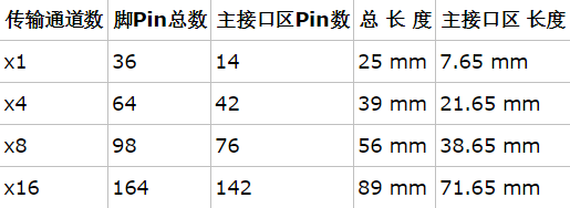 3.3 PCI-E不同傳輸通道數設備的金手指數和長度