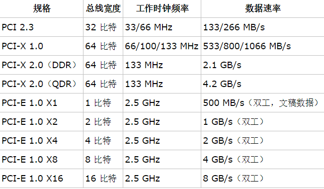 PCI-X目前的(de)(de)最新版本是2.0。下(xia)(xia)面講的(de)(de)的(de)(de)1.0版本,在(zai)外觀上(shang),它與64位(wei)PCI接(jie)口(kou)差不多。目前主(zhu)(zhu)要(yao)有100MHz和133MHz兩種外頻模式,不過目前主(zhu)(zhu)要(yao)用的(de)(de)是133MHz PCI-X接(jie)口(kou),理論(lun)共享傳輸(shu)速率(lv)達(da)到(dao)了(le)1.06GB/s。后來(lai)推出的(de)(de)2.0版本,頻率(lv)位(wei)266MHz和533MHz,共享傳輸(shu)速率(lv)為(wei)2.1GB/s和4.2GB/s。后來(lai)出的(de)(de)3.0標準1066MHz在(zai)PCI-E的(de)(de)沖擊下(xia)(xia)沒(mei)有了(le)下(xia)(xia)文。