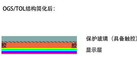 OGS全貼合是(shi)指(zhi)直接(jie)將觸(chu)(chu)控(kong)層(ceng)(ceng)做在(zai)了(le)(le)保(bao)護(hu)玻璃內側,整個屏(ping)幕由三層(ceng)(ceng)“玻璃+觸(chu)(chu)控(kong)層(ceng)(ceng)+顯示(shi)層(ceng)(ceng)”變為兩層(ceng)(ceng)“玻璃(具(ju)備觸(chu)(chu)控(kong))+顯示(shi)層(ceng)(ceng)”,厚度(du)縮減。這兩層(ceng)(ceng)之間還是(shi)通過水膠結合,通透性相比(bi)上(shang)面GFF又是(shi)一次提升(sheng)(sheng)。同(tong)時,由于觸(chu)(chu)控(kong)層(ceng)(ceng)挨(ai)著(zhu)屏(ping)幕保(bao)護(hu)玻璃,所以OGS也帶來了(le)(le)觸(chu)(chu)控(kong)靈敏度(du)上(shang)的提升(sheng)(sheng)。