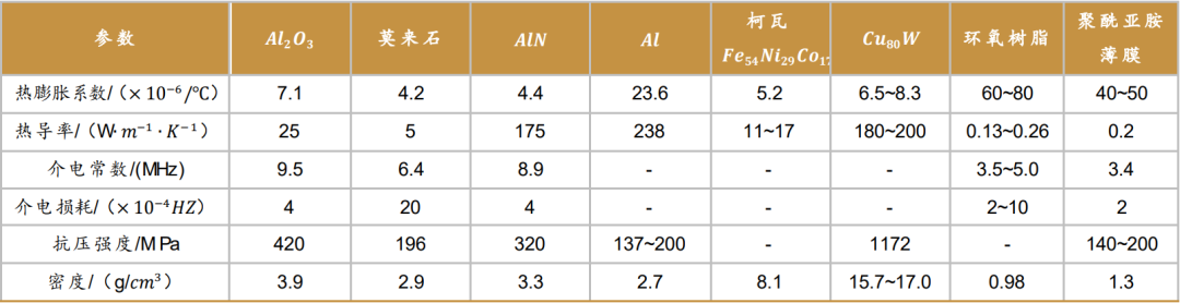 典型電子(zi)封(feng)裝(zhuang)材(cai)料性(xing)能(neng)對比