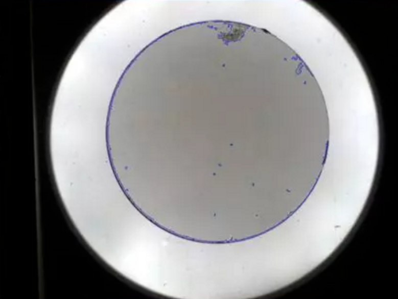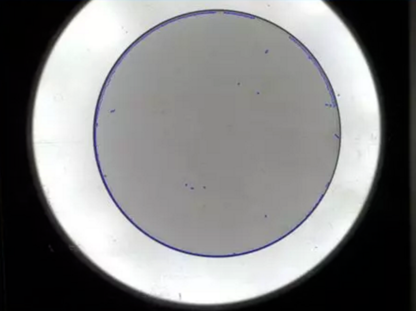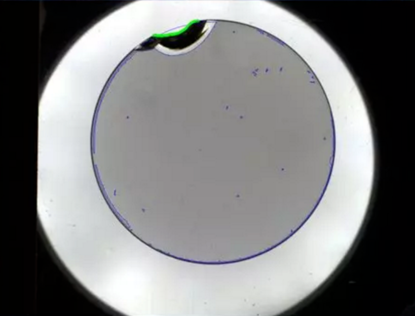 檢(jian)(jian)測效果(guo)圖(tu)中,藍(lan)色代表(biao)(biao)污漬等有問題(ti)的區域(精度為0.39mm);綠色代表(biao)(biao)透鏡(jing)缺損部分。檢(jian)(jian)測效率可達3秒/個,誤(wu)檢(jian)(jian)率低(di)于0.1%。