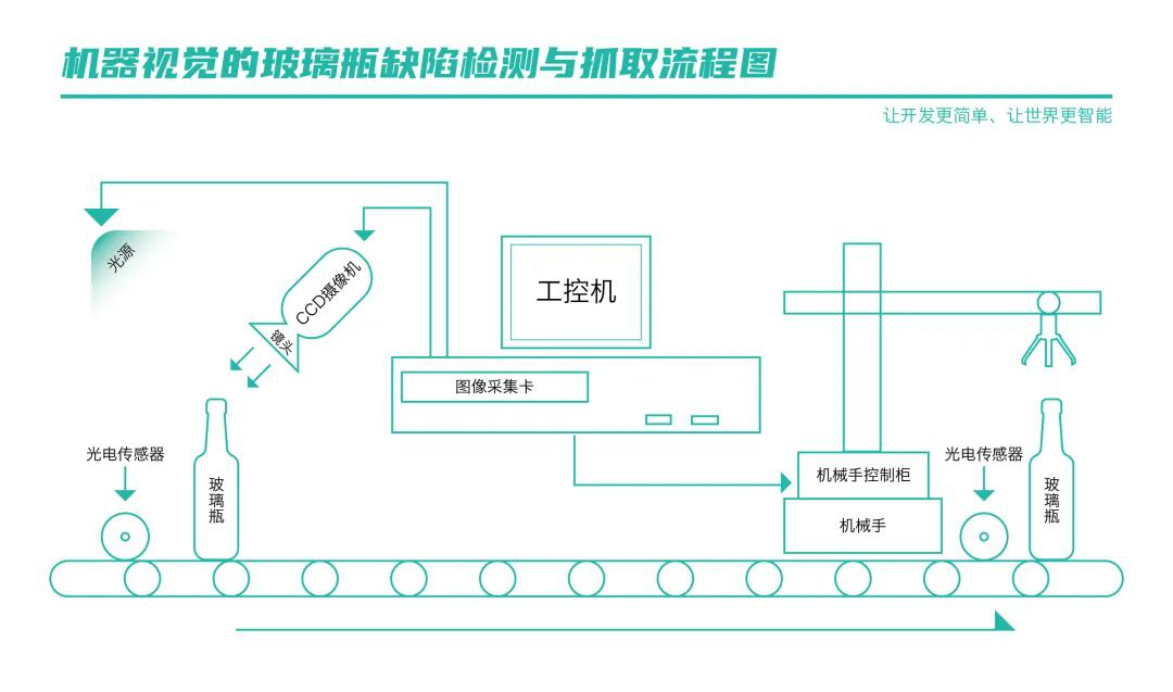 隨著計算機技術不斷發展,越來越多的企業已經逐步使用機器視覺檢測技術來代替人工進行質量檢測,這樣檢測標準可以通過系統進行設置,不受主觀因素的影響,可以連續、準確、可靠地完成檢測工作,提高工業產品自動化和智能化的發展。機器視覺在檢測玻璃瓶質量中的技術優勢1. 提高檢(jian)測精(jing)(jing)度(du),統一(yi)檢(jian)測標準(zhun),消除(chu)人(ren)工(gong)檢(jian)測的(de)(de)個(ge)體差異;2. 提高檢(jian)測速度(du),實(shi)(shi)現產品(pin)全方(fang)位(wei)實(shi)(shi)時檢(jian)測;3. 一(yi)次投入,平均成本遠小于人(ren)工(gong)成本;4. 可對數據進行匯總分析,便(bian)于前端工(gong)序查找問題(ti),為后續工(gong)序提供建議。針對玻璃(li)瓶檢(jian)測這種(zhong)帶(dai)有高度(du)重復(fu)性的(de)(de)工(gong)作(zuo),機器視(shi)覺檢(jian)測技術具有速度(du)快、精(jing)(jing)度(du)高、自動化程度(du)高 等突出的(de)(de)優點,能很好的(de)(de)滿足現代制造業的(de)(de)需(xu)求。