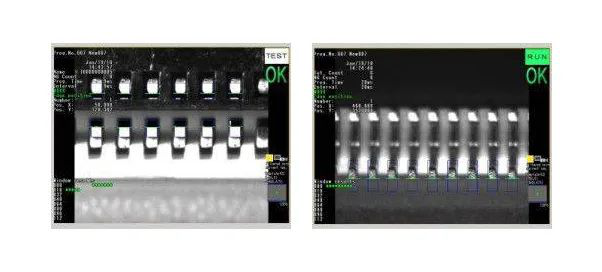 LED芯(xin)片在(zai)進行捆包(bao)過(guo)程中(zhong)(zhong),需要對其極性(xing)進行判斷,以確(que)保(bao)在(zai)料帶(dai)中(zhong)(zhong)的方向(xiang)一(yi)致,通(tong)過(guo)CCD在(zai)線檢測(ce)LED芯(xin)片的特征,判斷當前的產品(pin)是否處于(yu)正(zheng)確(que)的方向(xiang)狀(zhuang)態,當產品(pin)極性(xing)出(chu)現反向(xiang)的時候,系(xi)統會自動檢出(chu)并發出(chu)報警信號(hao)。