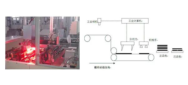 該檢測系統可代替(ti)人工對極(ji)片(pian)進(jin)行檢測,挑(tiao)選出(chu)次品極(ji)片(pian),實現極(ji)片(pian)檢測的自動化。