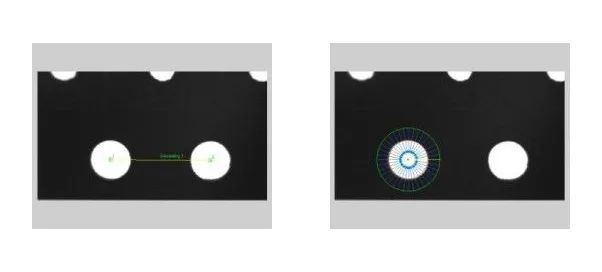 如圖(tu)產品(pin),針(zhen)對(dui)產品(pin)兩(liang)端的(de)圓孔,通過擬合(he)方式先計算出圓心(xin)的(de)位置,然(ran)后(hou)通過連接兩(liang)個圓心(xin)的(de)直線長度(du)(du),和角(jiao)度(du)(du)來判斷PCB產品(pin)的(de)尺寸和定位角(jiao)度(du)(du)是否處于正確的(de)狀態。