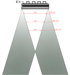光源(yuan)(推薦)工作(zuo)距離為50~150mm。表1為交叉線形光源(yuan)的推薦工作(zuo)距離、理(li)論有效(xiao)范(fan)圍與實(shi)際有效(xiao)范(fan)圍的關(guan)系圖。