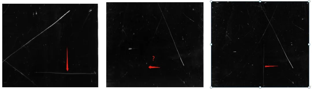 (a) 普(pu)通(tong)線光檢(jian)測“橫向(xiang)劃(hua)痕(hen)(hen)” (b) 普(pu)通(tong)線光檢(jian)測“縱向(xiang)劃(hua)痕(hen)(hen)” (c) 交叉線光檢(jian)測“縱向(xiang)劃(hua)痕(hen)(hen)”