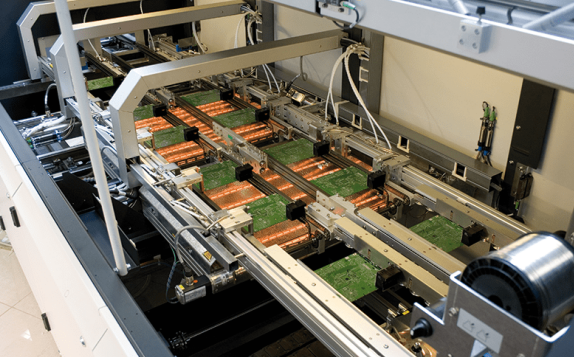 在(zai)BT樹脂/玻璃(li)芯板的兩面層壓極薄(12~18μm厚)的銅(tong)箔(bo),然后(hou)進(jin)行鉆(zhan)孔和(he)通(tong)孔金(jin)屬(shu)化(hua)。用常(chang)規的PCB加3232藝在(zai)基板的兩面制(zhi)作出圖形,如(ru)導帶、電極、及(ji)安裝焊(han)(han)(han)料(liao)球(qiu)的焊(han)(han)(han)區(qu)陣列(lie)。然后(hou)加上焊(han)(han)(han)料(liao)掩膜并制(zhi)作出圖形,露出電極和(he)焊(han)(han)(han)區(qu)。為提高生產效率,一條(tiao)基片上通(tong)常(chang)含有多個PBG基板。