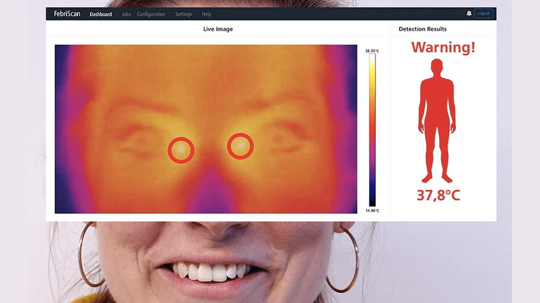 長波紅外(wai)(LWIR)波段范圍為(wei) 8-14 μm。具有(you)微測輻射(she)(she)熱計傳(chuan)感器(qi)的(de)(de)LWIR相機使用(yong)(yong)(yong)自然發(fa)射(she)(she)的(de)(de)輻射(she)(she)(熱成像)可實(shi)現高達250℃的(de)(de)高精度表面溫度分布測量。可以在(zai)遠距離、完全(quan)黑暗的(de)(de)環境中以及通過霧、灰(hui)塵、雨(yu)和(he)煙霧檢(jian)(jian)測到(dao)熱輻射(she)(she)。應用(yong)(yong)(yong)包括(kuo)監視(shi)、安全(quan)和(he)救援,最近還用(yong)(yong)(yong)于在(zai)Covid-19(一般指新(xin)型冠狀(zhuang)(zhuang)病毒(du)肺炎。新(xin)型冠狀(zhuang)(zhuang)病毒(du)肺炎Corona Virus Disease 2019,COVID-19,簡稱“新(xin)冠肺炎”)大流行期間對人體進行發(fa)燒篩查(圖(tu) 5)。工業(ye)應用(yong)(yong)(yong)包括(kuo)無損檢(jian)(jian)測和(he)過程檢(jian)(jian)測。LWIR光學(xue)器(qi)件通常由鍺或硫(liu)屬化物(wu)材料制成,例如Ge33As12Se55。硫(liu)屬化物(wu)具有(you)與鍺相似的(de)(de)光學(xue)和(he)機械性能,但(dan)折射(she)(she)率不同。