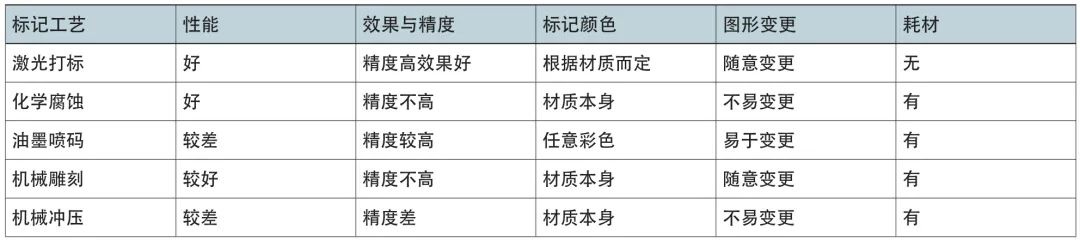 激(ji)光(guang)(guang)刻(ke)(ke)字(zi)(zi)的工作原(yuan)理(li)是(shi)(shi)以(yi)能量密度(du)極高(gao)的激(ji)光(guang)(guang)束在(zai)計算機的控制下,照射到需要(yao)打(da)標(biao)的產品(pin)表面(mian),使(shi)產品(pin)表面(mian)瞬(shun)間熔化或汽(qi)化,從而在(zai)產品(pin)表面(mian)標(biao)刻(ke)(ke)出需要(yao)的文字(zi)(zi)或圖案(an)標(biao)識(shi),如圖4所(suo)示。激(ji)光(guang)(guang)刻(ke)(ke)字(zi)(zi)也叫(jiao)激(ji)光(guang)(guang)打(da)標(biao),激(ji)光(guang)(guang)打(da)標(biao)的特(te)點:永(yong)久牢固、圖案(an)精美、高(gao)速高(gao)效、非接觸方式(shi)、重(zhong)復(fu)精度(du)高(gao)、無須制版、沒(mei)有污染、易于實現與(yu)生產線同步飛(fei)行打(da)印等特(te)點。標(biao)記內容可(ke)(ke)以(yi)是(shi)(shi)數字(zi)(zi)、字(zi)(zi)母(mu)、漢字(zi)(zi)、圖形(xing)圖象、條形(xing)碼等。激(ji)光(guang)(guang)刻(ke)(ke)字(zi)(zi)是(shi)(shi)目前國際流行的最(zui)為先進的打(da)標(biao)模式(shi),非常適應現代化生產(高(gao)效率、快節奏)。如表1所(suo)示是(shi)(shi)幾種(zhong)標(biao)記工藝的對比,從中可(ke)(ke)以(yi)看出來,激(ji)光(guang)(guang)打(da)標(biao)技(ji)術的優勢是(shi)(shi)非常明顯的。