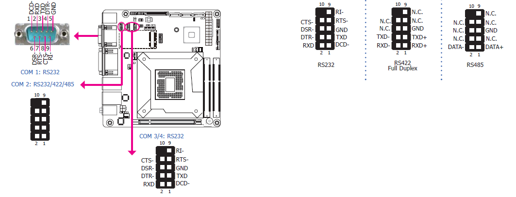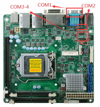 (1)以上機型是COM2支持RS-232/422/485,COM1、COM3、COM4只支持RS-232,7130主板的COM口分布如下圖8所示位置