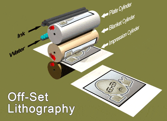 最(zui)后(hou)是(shi)將(jiang)印(yin)版(ban)(ban)上(shang)的(de)(de)油墨轉移(yi)到乳(ru)皮上(shang),再利用橡皮滾輪(lun)與壓印(yin)滾筒之間(jian)的(de)(de)壓力,將(jiang)乳(ru)皮上(shang)的(de)(de)油墨轉移(yi)到承(cheng)印(yin)物(wu)上(shang),完成一次印(yin)刷(shua),所以,平(ping)版(ban)(ban)印(yin)刷(shua)是(shi)一種(zhong)間(jian)接的(de)(de)印(yin)刷(shua)方(fang)式。