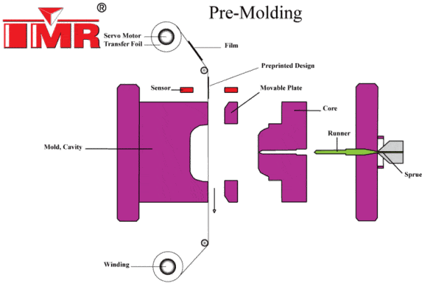 IMR (In-Mold Roller) :即模內(nei)墨轉印(yin)是(shi)通過注塑將附著(zhu)在薄膜上的油墨轉印(yin)到產(chan)品外(wai)觀面上,再通過模具開模過程揭開薄膜的一種模內(nei)裝飾技(ji)術。