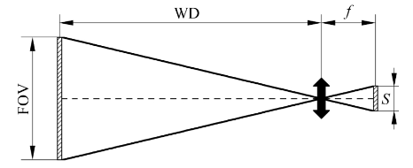 圖3:鏡(jing)頭的小孔成像(xiang)簡化模型根據該簡化模型,可(ke)以得(de)出機器(qi)視(shi)(shi)覺系統圖像(xiang)傳(chuan)感(gan)(gan)器(qi)尺寸S(傳(chuan)感(gan)(gan)器(qi)平(ping)面某個方向(xiang)上(shang)的長度)、視(shi)(shi)場(chang)FOV、工(gong)作距離WD及鏡(jing)頭焦距f之間(jian)的約束關系: