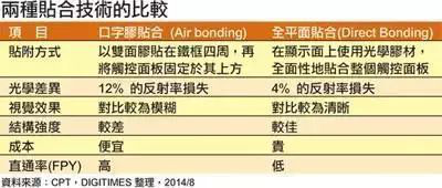 全(quan)貼(tie)合雖然成本較高,但其光學表現是口字貼(tie)無法比擬(ni)的(de),加上5寸以下(xia)全(quan)貼(tie)合良率高、技術(shu)純熟,因此許多手(shou)(shou)機(ji)大(da)廠的(de)主流與高階手(shou)(shou)機(ji)甚至平板產品,都開始采用(yong)全(quan)貼(tie)合面板,成為當今主流解(jie)決(jue)方(fang)案。