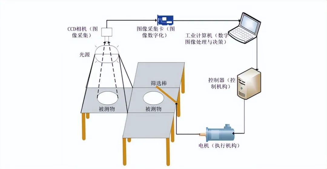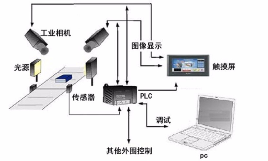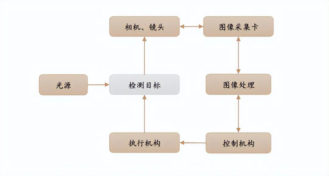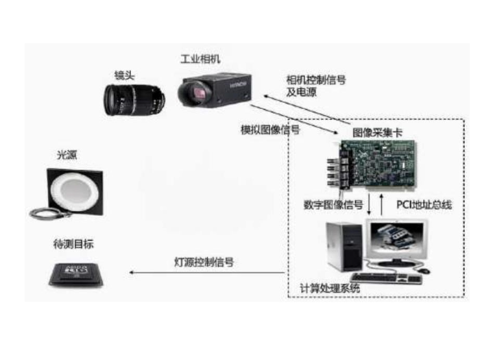在一個(ge)典型的機器(qi)視(shi)覺(jue)系統中(zhong),光源(yuan)及(ji)光源(yuan)控(kong)(kong)制器(qi)、鏡(jing)頭、相機等硬件部分負責(ze)成(cheng)像(xiang),視(shi)覺(jue)控(kong)(kong)制系統負責(ze)對成(cheng)像(xiang)結(jie)(jie)果進行(xing)處(chu)理分析、輸出分析結(jie)(jie)果至智能設備的其(qi)他執(zhi)行(xing)機構。機器(qi)視(shi)覺(jue)應用系統包括圖(tu)像(xiang)捕捉(zhuo)、光源(yuan)系統、圖(tu)像(xiang)數字(zi)化模(mo)塊(kuai)、數字(zi)圖(tu)像(xiang)處(chu)理模(mo)塊(kuai)、智能判斷決(jue)策模(mo)塊(kuai)和(he)機械控(kong)(kong)制執(zhi)行(xing)模(mo)塊(kuai)。
