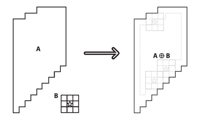 在(zai)數(shu)學(xue)形態(tai)學(xue)中,設(she)A為(wei)(x,y)平面上(shang)(shang)一目標(biao)區(qu)域(yu),S為(wei)指定(ding)大小和形狀的(de)結(jie)構元素(su),定(ding)義位于坐標(biao)(x,y)上(shang)(shang)的(de)結(jie)構元素(su)S所標(biao)識(shi)的(de)區(qu)域(yu)為(wei)S(x,y),那么對于A的(de)膨脹結(jie)果可以(yi)表示為(wei):