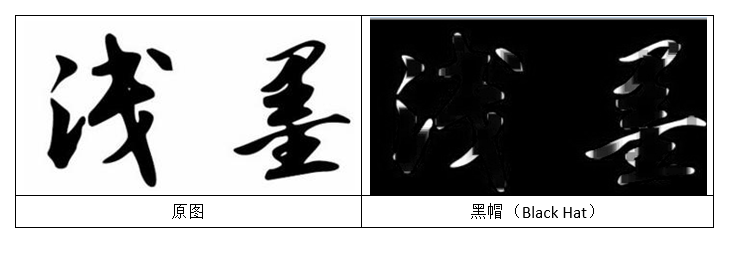 黑帽(Black Hat)運算為(wei)”閉運算“的結果圖(tu)與原圖(tu)像之差(cha)。數學表達式為(wei):