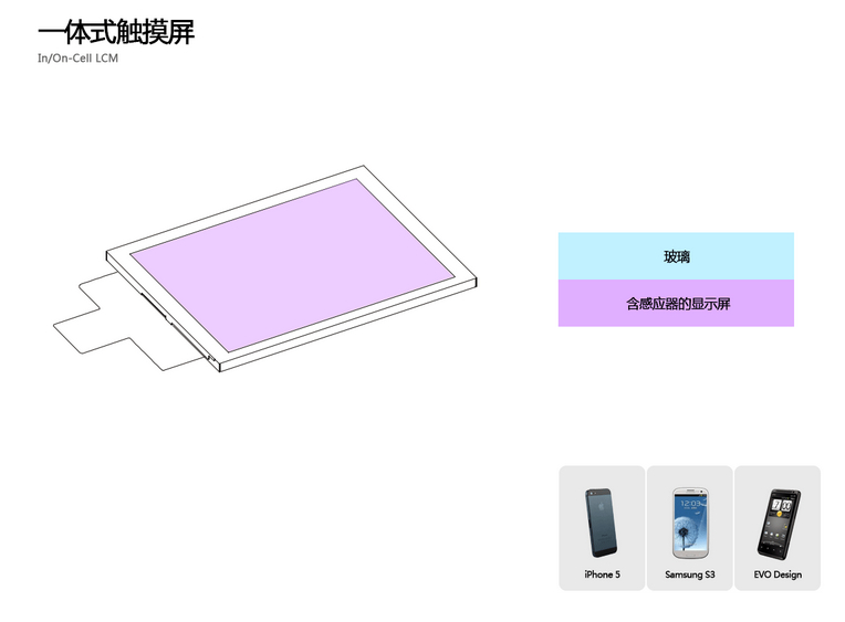 包括(kuo)iPhone 3GS和紅米的(de)屏(ping)幕都是分(fen)離式結構(gou),它的(de)缺點是:觸控層和顯(xian)示(shi)屏(ping)之(zhi)間必然(ran)存在影響(xiang)顯(xian)示(shi)效果的(de)空隙,分(fen)離的(de)結構(gou)同時也(ye)增加了(le)手機厚度和工藝難度。
