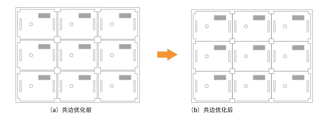 據統計,采用共邊切(qie)割(ge)案(an)例,實(shi)際切(qie)割(ge)路徑(jing)能縮短30%,材料(liao)利用率(lv)提高8%左右(you)。