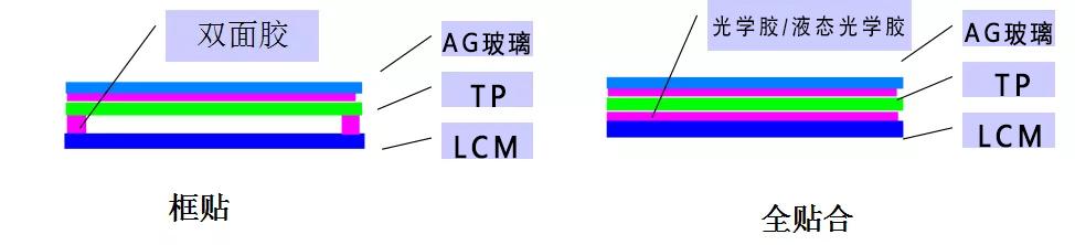 我們手機電腦的(de)屏(ping)(ping)幕是液晶屏(ping)(ping),從屏(ping)(ping)幕的(de)結構上看,可以大致分(fen)(fen)成3個(ge)部分(fen)(fen),從上到下分(fen)(fen)別是保護玻璃,觸摸(mo)屏(ping)(ping)、顯示屏(ping)(ping)。把這三部分(fen)(fen)粘起(qi)來的(de)方式(shi)就是貼合方式(shi),可以稱為全(quan)貼合和(he)框貼。