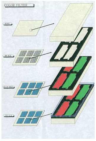 CF 工序是從投入白玻璃基板,到黑矩陣、三基色及ITO 制作完成。具體見下圖: