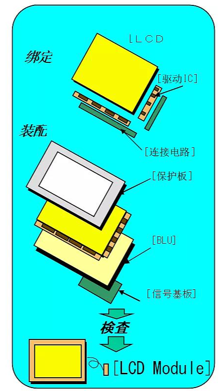 Module 工序是從 LCD 屏開始到驅動電路制作完成,形成一個顯示模塊。具體示意圖如下: