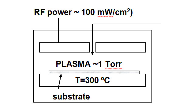 PECVD 是通過化學反應在玻璃基板表面形成透明介質膜。等離子體的作用是使反應氣體在低溫下電離,使成膜反應在低溫下得以發生。其原理示意圖如下: