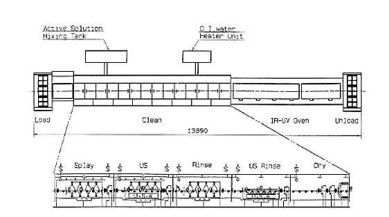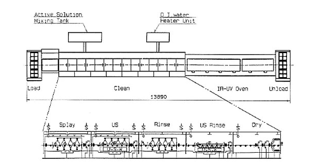 濕刻的設備一般與后面清洗、干燥的設備連成線,見下圖: