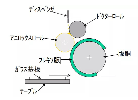 PI(Polyimide)是一種透明的有機高分子材料,有主鏈和側鏈,經涂布烘烤后,會牢固地附著在CF 和TFT 基板表面。PI 的涂布采用一種凸版印刷的技術。其工作原理見以下示意圖: