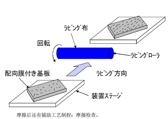 摩擦的作用是用絨布在PI 上摩過,將PI 的側鏈梳理到一個方向。示意圖如下: