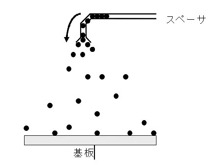 盒厚控制是靠選擇設定的球形襯墊料的直徑來實現的。襯墊料需要在貼合前均勻地噴灑到玻璃基板地表面,這是通過一種讓襯墊料帶電后干噴的設備完成的。其示意圖如下: