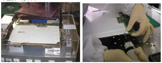 組裝是將背光源、屏、控制電路板、及觸摸屏等部件組合在一起,形成一個完整的顯示模塊。組裝一般是由手工來完成的,熟練的技術工人在這里非常重要。見下圖: