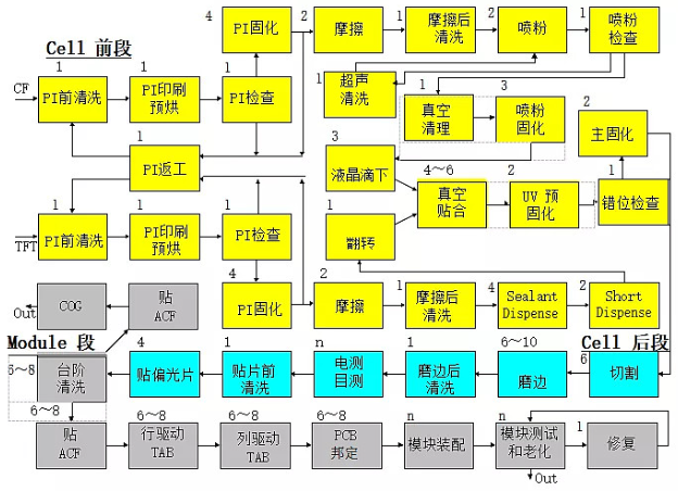 模塊(kuai)段除(chu)去以上主要工(gong)藝(yi)制(zhi)程(cheng)外,還有一些輔(fu)助的工(gong)藝(yi)制(zhi)程(cheng),如:激光切(qie)線(xian),切(qie)線(xian)后(hou)電(dian)測(ce)(ce),邦定(ding)后(hou)電(dian)測(ce)(ce),組(zu)裝后(hou)電(dian)測(ce)(ce),切(qie)線(xian)后(hou)顯微(wei)(wei)鏡檢查(cha),綁(bang)定(ding)后(hou)顯微(wei)(wei)鏡檢查(cha)或(huo)自動光學檢查(cha),IC 邦定(ding)后(hou)剪切(qie)力剝離(li)測(ce)(ce)試,FPC 邦定(ding)后(hou)拉(la)力剝離(li)測(ce)(ce)試,組(zu)裝后(hou)加(jia)電(dian)老化,包裝出貨等(deng)。