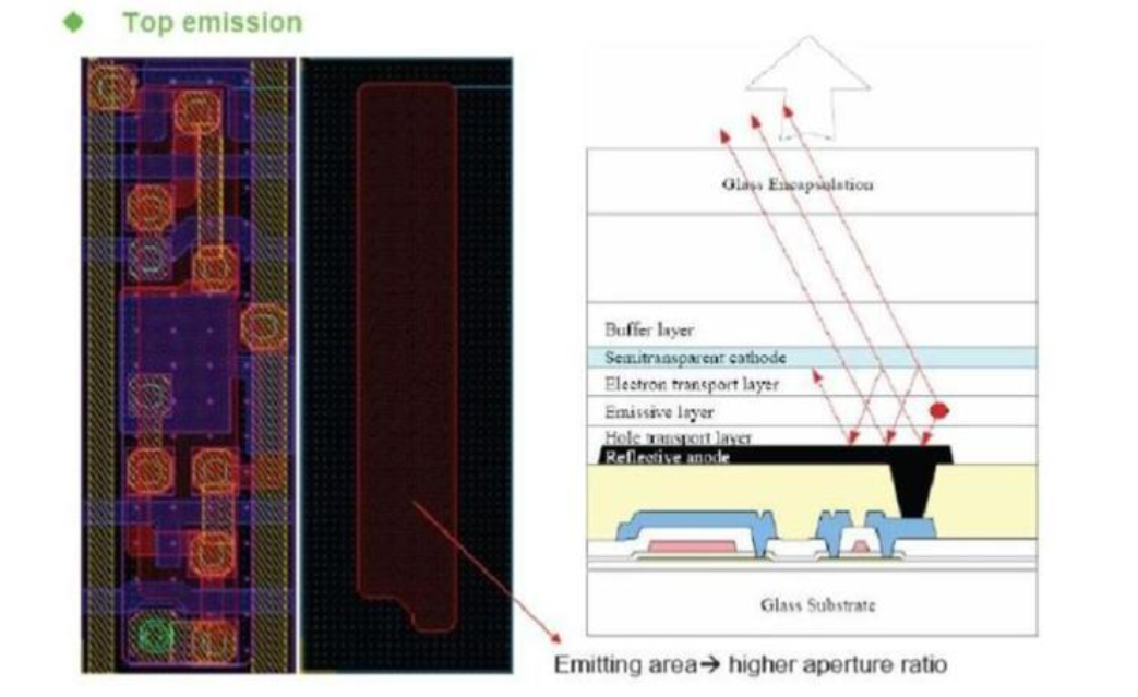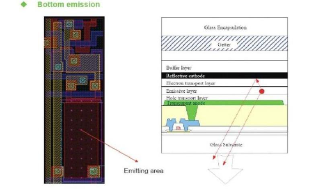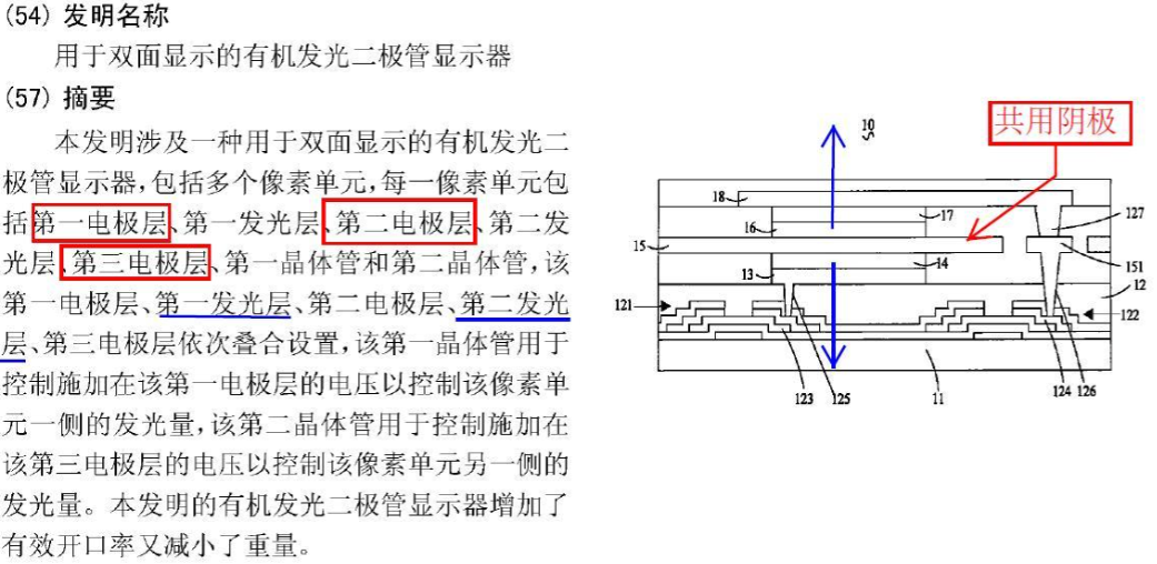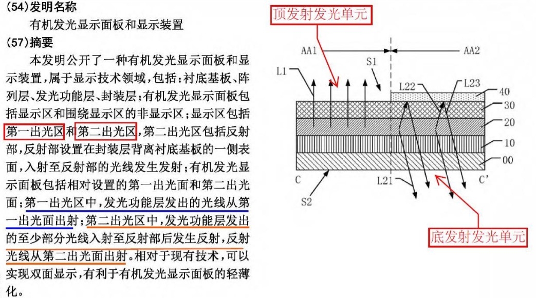 互補性雙面OLED顯示裝置,存在PPI較低的問題,其實通過并列頂發射發光單元和底發射發光單元,進而在相對的兩個表面獲得出射光束,實現雙面顯示,具體的解決方案可參見專利CN108288633A: