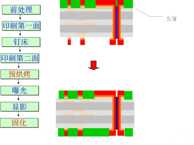 阻焊,俗稱“綠油”,為了便于肉眼檢查,于主漆(qi)中(zhong)多加入對眼睛有(you)幫助(zhu)的綠色顏料,其(qi)實(shi)防(fang)焊漆(qi)了綠色之外尚有(you)黃色、 白色、黑色等顏色。