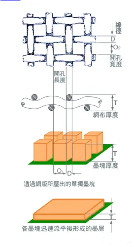 目的:利用絲網將油墨印寫在板子上,如下圖: