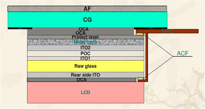 OGS(One Glass Solution):一塊玻(bo)璃的(de)解決方(fang)案。觸(chu)摸(mo)屏和保護(hu)玻(bo)璃集(ji)成(cheng)(cheng)在一起(qi),在保護(hu)玻(bo)璃內(nei)側鍍(du)上(shang)ITO導電(dian)層。優(you)點是使得(de)TP更薄(bo),成(cheng)(cheng)本(ben)更低,透光性更好(hao)。