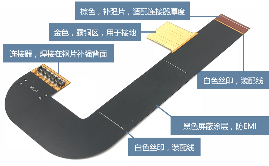 黑色的那(nei)一層,不只(zhi)是電路板上那(nei)種黑色絕緣漆(qi),內部(bu)還有一層金(jin)屬(shu)膜(mo)。金(jin)屬(shu)膜(mo)和FPC的地(di)接(jie)通,就(jiu)實現(xian)了(le)屏蔽效(xiao)果。