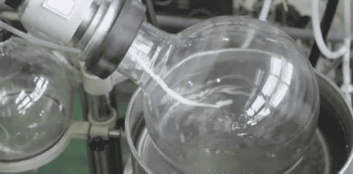 在瓶中加溫旋轉的就是液晶了,現在是正在進行提純工作。