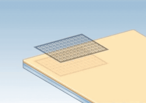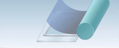 現在要將偏光板,按照一定的方向,貼附到液晶面板的兩面,先看個動畫演示。