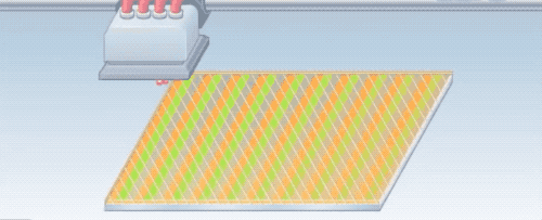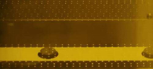 來看一(yi)個實際制作(zuo)(zuo)的(de)(de)特(te)寫(xie)鏡(jing)頭!在 TFT 薄(bo)膜晶(jing)體管基板上(shang)完成點(dian)液晶(jing)的(de)(de)工(gong)作(zuo)(zuo)~毫無疑問的(de)(de),這些工(gong)作(zuo)(zuo)也只能讓機器操作(zuo)(zuo),不(bu)會出現(xian)老(lao)(lao)爺爺老(lao)(lao)奶(nai)奶(nai)的(de)(de)手工(gong)了,極其精密地控制液晶(jing)滴(di)(di)下(xia)的(de)(de)量以及(ji)滴(di)(di)下(xia)的(de)(de)位(wei)置。
