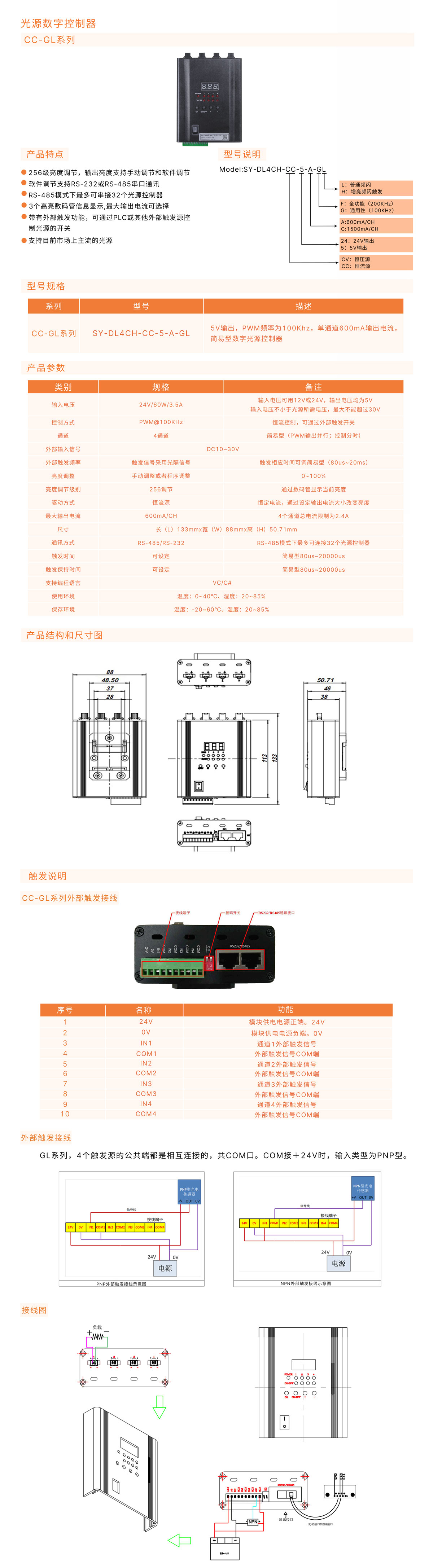●帶有外部觸發功能,可通過PLC或其他外部觸發源控制光源的開關